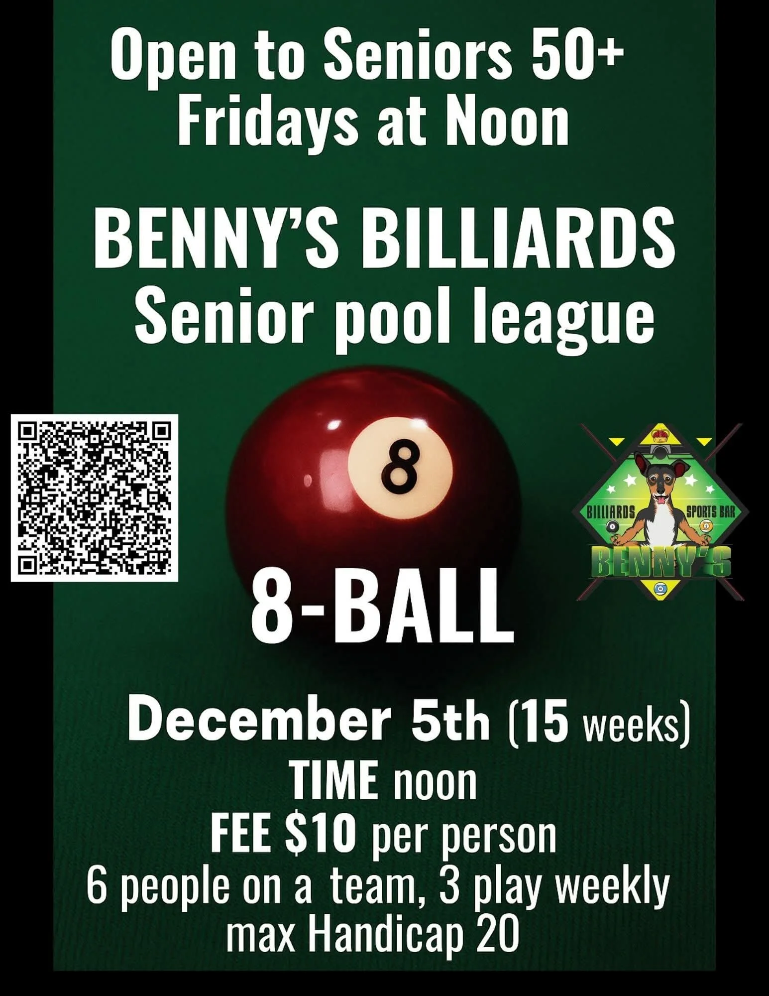 Featuring TEN (10) 9’ Brunswick pool tables for rent and league play, in-house cash league, full bar with craft beer on tap, darts, and kitchen.